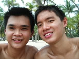 Reached Sentosa Siloso Beach at about 8:15am and start chopping for a net and space there. While waiting for others to join us at 9:30am, we keep playing volleyball - Gideon is such a expert...